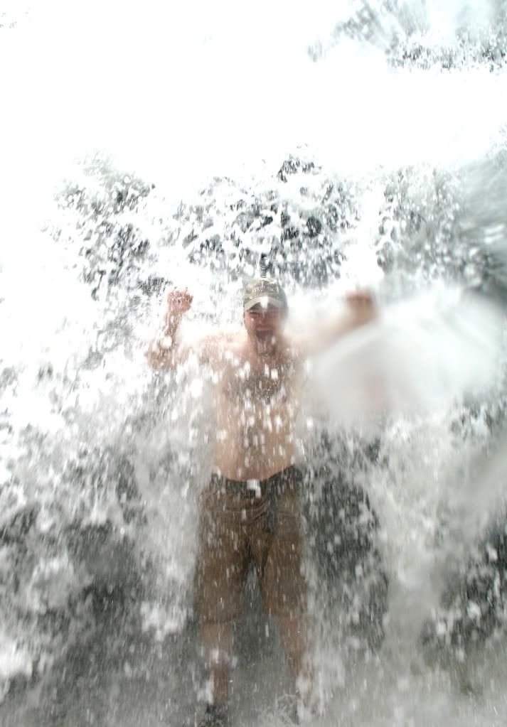 Then escaped. Found a way down to the river, had a house meeting (ah, bureaucracy, however, my college "daughter" was elected House King, so I guess I can get things I want done now...), grabbed some company, headed back to the river and waded/swum downstream until we got to a 10m waterfall.